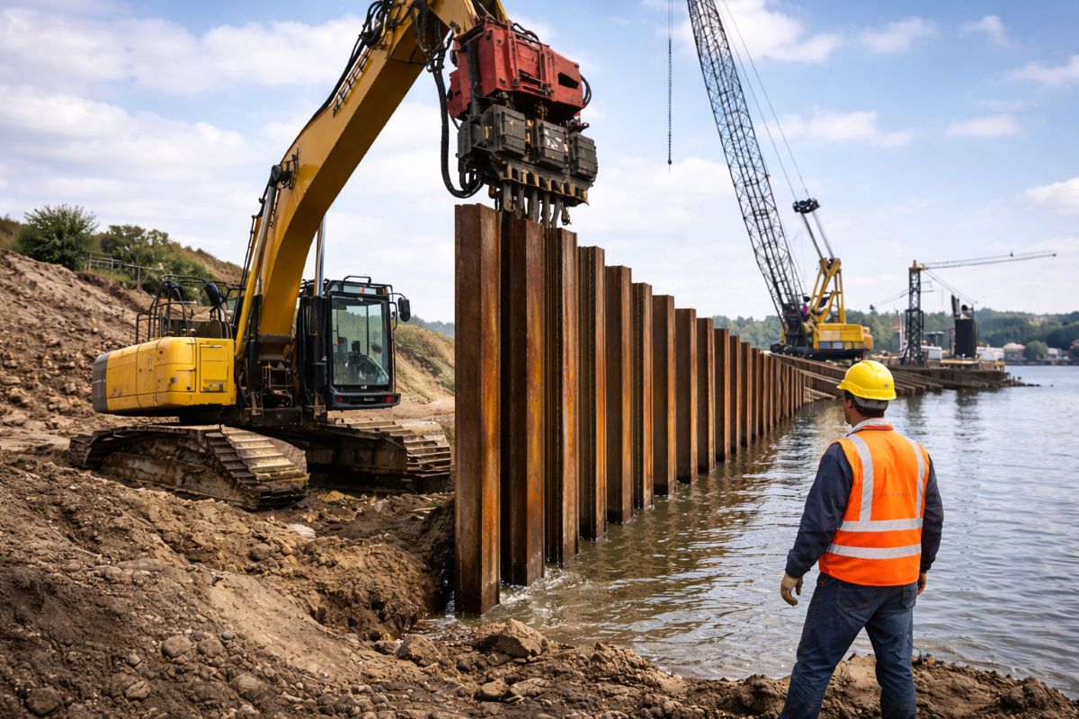 Eseguiamo infissione di palancole metalliche tipo LARSEN per il contenimento del terreno e la messa in sicurezza di scavi, arginature, opere idrauliche e interventi di consolidamento strutturale.